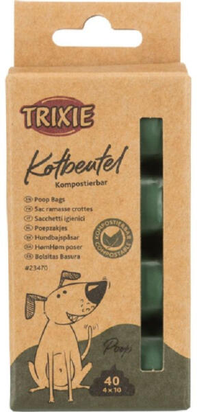 Trixie Ürülékgyüjtő Zacsi 4 tekercs/10db Komposztálható Komposztálható ürülékgyűjtő zacskó, kukoricakeményítővel. Különösen tartós és stabil, így segítségével könnyen felszedhető a kutyaürülék.
