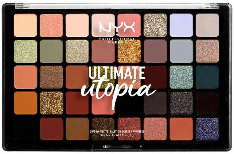 NYX PM Ultimate Ulti Shadow 1W Utopia szemhéjfesték paletta, 40 g A 40 pigmentált szatén, gyöngyházfényű és matt árnyalatot tartalmazó szemhéjfesték paletta széles választékban tökéletes azoknak, akik szeretnek sminkelni és szeretnének kísérletezni a különböző megjelenésekkel, mivel meleg, hideg, sötét és világos árnyalatokat tartalmaz. Ajánlás:Használja szemhéj