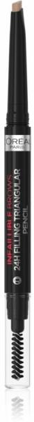 L’Oréal Paris Infaillible 24h Filling Triangular Pencil, 1 ml, Szemöldök nőknek, Semmi sem keretezi jobban az arcot, mint az ápolt, tökéletesen formázott szemöldök. A kiváló minőségű L’Oréal Paris Infaillible 24h Filling Triangular Pencil szemöldökceruza segítségével tökéletesen formázott és telt szemöldököt alkothat. Használja a szemöldök megrajzolásához, hang