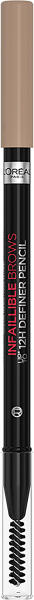 Infaillible brows 12H definer precíz szemöldökceruza a L'Oréal Paristól beépített kefével a gyönyörűen megformázott és kitöltött szemöldökért. Használata: 1. lépés: Használja a ceruza hegyét a precíz szemöldökforma megrajzolásához és könnyed mozdu