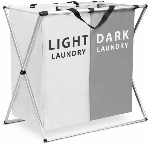 Modern megjelenésű, szövetből készült szennyestartó kosár több rekesszel. A masszív, fém váznak és a nagy befogadóképességnek köszönhetően akár több kilógram ruha, ágynemű tárolására is alkalmas. A rekeszek lehetővé teszik a különböző színű ruhák elkülönítését. Az egy mozdulattal történő összecsukás és a hordozófülek könnyű hordozhatóságot garan