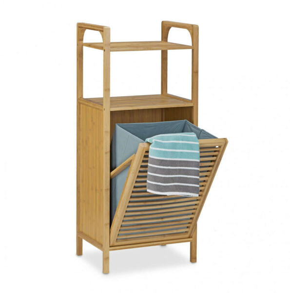 Tegyen rendet fürdőszobájába a fürdőszobai polc és a szennyeskosár kombinációjával. A praktikus szennyestáska ki- és behajtható, és elegánsan elrejti a szem elől a piszkos ruhaneműt. A fürdőszobai polc ideális apró tárgyak, például kozmetikumok, mosószerek és sok más tárolására is. Helytakarékosan alkalmazkodik. Tetszetős kialakításának köszönhetően a termés