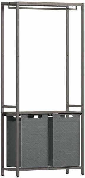 szennyeskosár ruhatartóval, szennyestartó 2 rekesszel, 73 x 33 x 177 cm, ruhatartó, szennyestartó, szennyestáska, kihúzható, kivehető, 2 x 46 l, szürke mintás, palaszürke: [2 rekesz a ruhaneműk szétválogatásához] A 92 literes összkapacitással (rekeszenként 46 liter) ez a tágas szennyeskosár egy hétig elfér az egész család szennyesével. A 2 rekesz segíti a szennyes válo