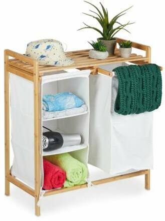 LANAK Bambusz Szennyestartó, Polcokkal Teljes mérete: 73,5 x 64,5 x 33 cm (Ma x Szé x Mé) Szennyeskosár űrtartalma: 34 l Szennyeskosár terhelhetősége: kb. 6 kg Polc mérete: 5,5 x 61 x 33 cm (Ma x Szé x Mé) Textil polcok mérete: 16 x 25 x 28 cm (Ma x Szé x Mé) Anyaga: Bambusz, Poliészter Szín: Natúr-Bézs Súly: 3,5 kg