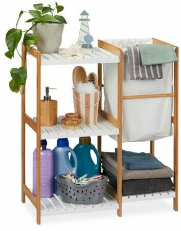 Nicol Bambusz Fürdőszoba Polc és Szennyestartó Teljes mérete: 76 x 65,5 x 33 cm (Ma x Szé x Mé) Polcok mérete: 36 x 32,5 cm (Szé x Mé) Szennyestartó mérete: 48 x 26 x 28 cm (Ma x Szé x Mé) Szennyestartó Űrtartalma: 34 L Terhelhetősége: max. 5 kg Anyaga: Bambusz, MDF, Poliészter Súly: 4,9 kg