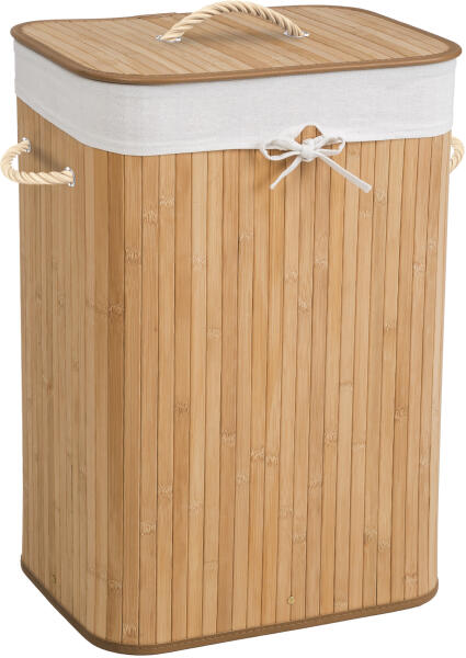 Ez a szép és praktikus kosár segít a rend megőrzésében. Bambusz lapokból készült, elrejtheti benne szennyesét, cipőit, vagy játékokat. Nagy térfogatú, használaton kívül könnyen szétszedhető és összecsukható. A felhasznált bambusz anyag kellemes, természetes megjelenést ad, és a kosár szépen mutat az előszobában vagy a nappaliban. A belső bélése egy eltávolítha