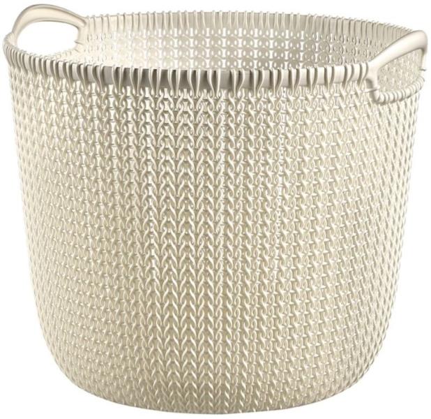 CURVER KNIT L kerek kosár 30L, krém 226388 (03673-X54) Új termékvonalunk lekerekített formájú, kötött hatású tároló kosara. Az egyedi formatervezésnek és a semleges színválasztéknak köszönhetően a lakás szinte összes helyiségébe passzol. A termék anyaga és a kivitelezés minősége garanciát jelent arra, hogy a kosárban tárolt tárgyak ellenállnak a sérülésnek és