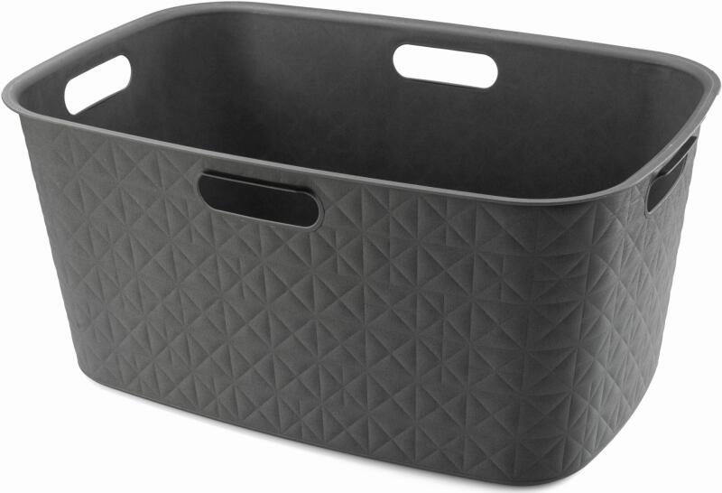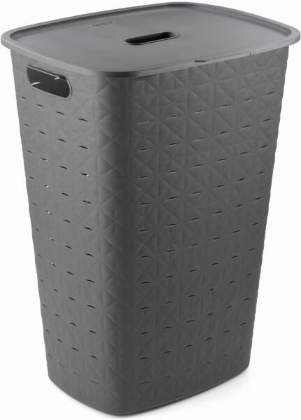 CURVER SOFTEX ruháskosár 45L, sötétszürke 258705 (00572-Z68) Az 45 literes szennyeskosár egy különleges szövési és varrási technikát ötvöz, amely olyan mintázatot hoz létre, amely úgy néz ki, mintha párnázott lenne, így esztétikus és barátságos hangulatot kölcsönöz bármelyik szobának. Ez a szennyeskosár nemcsak könnyen mozgatható, hanem fenntartható is, mivel 70%