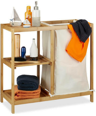 DORIS Bambusz Szennyestartó és Fürdőszoba Polc. Kitűnő megoldás azok számára, akik helyszűkében vannak. A bambusz egy strapabíró, természetes anyag. Gyors és egyszerű összeszerelés. Könnyen tisztán tartható. Kivehető és mosható belső huzat. Teljes mérete: 65 x 68 x 33 cm (Ma x Szé x Mé) Felső és Alsó polc mérete: 25 x 25 cm (Szé x Mé) Középső polc mérete: 25 x