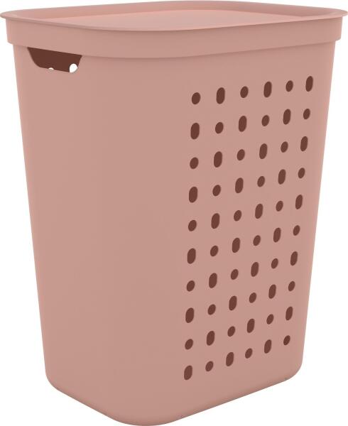 Műanyag szennyestartó kosár, barna színben fedéllel ellátva. Modern kialakítás mely kinézetében nagyon közeláll a rattan kialakításhoz. A kosártest szitás kialakítása szellőzést biztosít a behelyezett szennyesnek. Egyszerű hordozhatóság a két markolatnak köszönhetően. Minőségét és dekoratív kialakítását a CURVER márkanév hűen tükrözi. Termék részletek: te