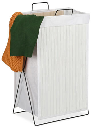 ARTON Összecsukható Szennyeskosár Teljes mérete: 61 x 38 x 22 cm (Ma x Szé x Mé) Összecsukott mérete: 62 x 35 x 4 cm (Ma x Szé x Mé) Űrtartalma: 40 L Anyaga: Bambusz, Szövet, Fém Szín: Fehér