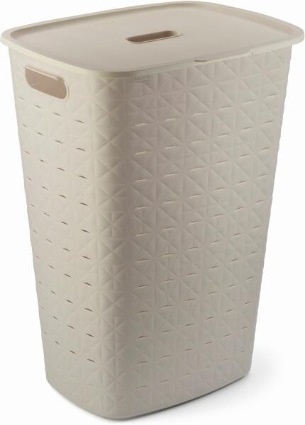 CURVER SOFTEX szennyestartó 56L, bézs 258692 (00571-Z67) Az 56 literes szennyeskosár egy különleges szövési és varrási technikát ötvöz, amely olyan mintázatot hoz létre, amely úgy néz ki, mintha párnázott lenne, így esztétikus és barátságos hangulatot kölcsönöz bármelyik szobának. Ez a szennyeskosár nemcsak könnyen mozgatható, hanem fenntartható is, mivel 70%-ban ú