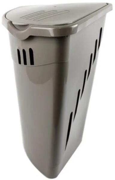 1302 8010059013021 SZENNYESTARTÓ Szennyeskosár műanyag Ha a fürdőszobában vagy a mosókonyhában korlátozott a hely, biztosan tetszeni fog ez a sarok kosár a piszkos szennyeshez. Egyszerű kialakítása biztosan illeszkedik fürdőszobába. A kosár tökéletes megoldás az esztétikát és kényelmet keresők számára. Vonzó kinézete lehetővé teszi a beltér legújabb trendek szerint