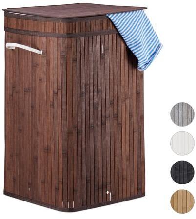 Szennyeskosár fedéllel, 90 L-es szennyestartó, kivehető szennyestáska, Oxford szövet, bambusz fogantyúk, összecsukható, 42 x 32 x 70,5 cm, tintafekete [Tágas] Ez a 90L-es szennyestartó, amely 42 x 32 x 70,5 cm méretű, bőséges helyet kínál egy személy egyheti szennyesének, így megkönnyíti a mosási teendőket. [Praktikus fedél fogantyúval] A fedél megakadályozza a por bej