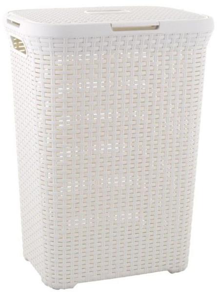 Műanyag szennyestartó kosár, krém színben fedéllel ellátva. Modern kialakítás mely kinézetében nagyon közeláll a rattan kialakításhoz. A kosártest szitás kialakítása szellőzést biztosít a behelyezett szennyesnek. Egyszerű hordozhatóság a két markolatnak köszönhetően. Műszaki adatok: termék mérete: 45x34x62 cm alapanyag: műanyag szín: krém súly: 1,89 kg Csomag ta