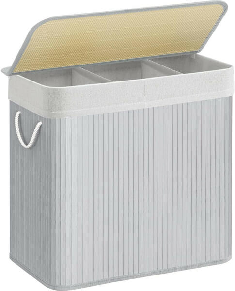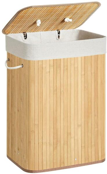 bambusz szennyeskosár, XL-es összecsukható tárolórekesz kivehető mosható béléssel, 72L, 40 x 30 x 60 cm, natúr [Fedős szennyeskosár] A kosár teteje egy kézzel nyitható és zárható, így könnyebben tárolhatja a ruhaneműt. A fedél megakadályozza a kellemetlen szagok kialakulását és védi a ruhaneműt a portól [Tágas, mégis helytakarékos] Ez a 40 x 30 x 60 cm-es mosodai p