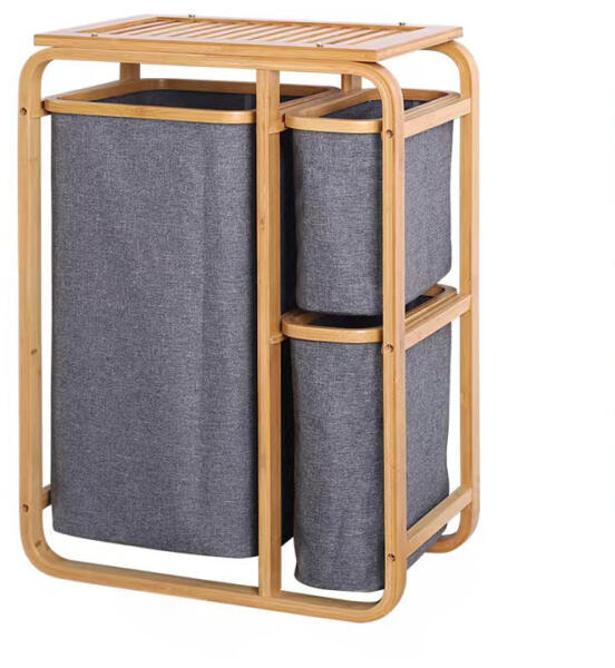 A RAGEL lakkozott bambusz szennyeskosár szürke színű kivehető szövettáskával és három tárolópolccal gondoskodik a piszkos ruhaneműről. A bambuszból készült szennyeskosár a skandináv stílusú fürdőszoba dekorációja lesz, amely a természeten alapul. A kiváló minőségű bambusz speciális lakkal van kezelve, amely meghosszabbítja az anyagok élettartamát. A bambusz kitű