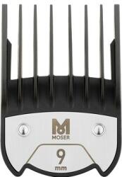 Moser Mágneses prémium 9mm toldófésű 1801-7070 Lekerekített fésű élek kímélik a fejbőrt és sima siklást biztosít a hajon. A prémium minőségű toldófésűk optimális eredményt és hosszan tartó illesztési pontosságot biztosít. Ellenálló a szalonokban használt vegyi termékek ellen. Könnyű kezelhetőség és a méretinformációk jól láthatósága magas, nagy kontrasz