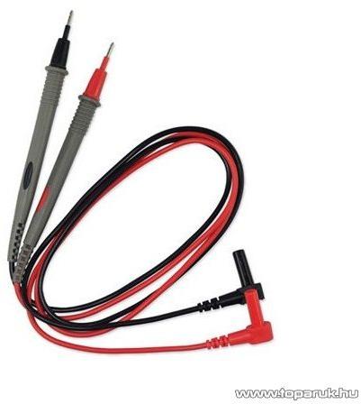 - Univerzális mérőzsinór pár. - Piros-szürke és fekete-szürke mérőfej, vezeték és banándugó. - 60 cm hosszú. - 105 mm-es mérőfejek, védősapkával. - 15 mm-es, 90°os, szigetelt banándugók. - Kettős szigetelésű, CATII, 1000V.