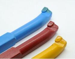 Esztergakés, eltoltélű külső menetvágó ISO12 P30; K10; M10 forrasztott lapkával Esztergakés, eltolt élű külső menetvágó ISO12 forrasztott keményfém lapkával (DIN282) Acélhoz, P30-as (kék) Öntvényhez, K10-es(piros) Rozsdamentes acélhoz, M10-es (sárga)