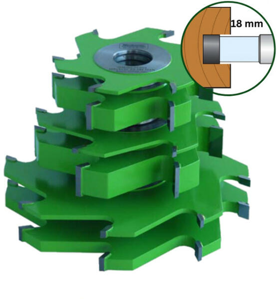 Természetes fához, MDF-hez és egyéb bútor alapanyagokhoz, műanyaghoz, 18 mm vastag és maximum 42,5 mm mély nútok, hornyok, vájatok, rések, csapok marására tervezett 125x18x30 mm Z6 HM HW nútmaró, professzionális faipari asztali marószerszám asztalos marógépekhez, vídia (keményfém) élekkel. 125 mm átmérőjű, 18 mm vastag, 6 késes, HM, forrasztott lapkás nútmaró, tárc