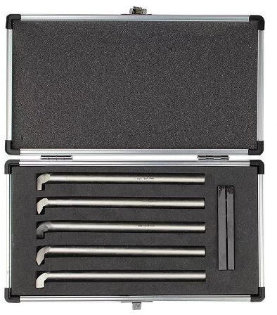 PTK HSS furatkés készlet ø 4 mm, 5 részes 5 db HSS alapanyagú késből álló készle furatesztergálására és belső menet készítésre használható a minimális furat átmérő 8 mm alumínium koffer a praktikus tároláshoz és szállításhoz Szár mérete: 4 mm Teljes hosszúság: 60 mm A készlet tartalma: 3 db HSS furat esztergakés 1 db HSS belső menetkés 55°-os menet készít