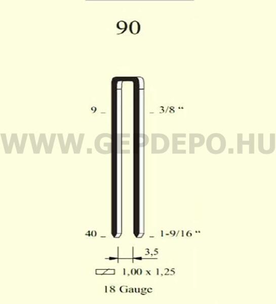 90 X 40 mm hosszú 5000db/csomag Gauge 18 (1,00 x 1,25)