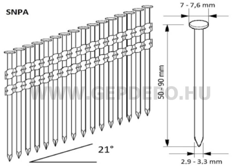Műanyagkötésű 21°-os síktáras szeg