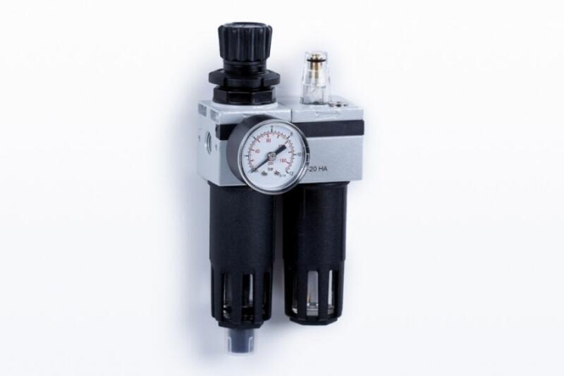 Sűrített levegő előkészítő egység, 1/8 colos menettel, 20 mikronos szűrési finomságú, állítható olajzóval. Alkalmas egyszerű pneumatika felhasználáshoz. Nyomásmérő óra nem tartozék!