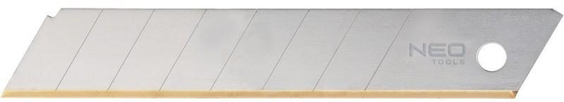 A NEO 18 mm széles és 0,5 mm vastag tartalék törhető penge a kés cserélhető eleme. A vágóélek titánbevonata megnöveli a szerszám élettartamát. A készlet 10 db-ot tartalmaz. A NEO márka a professzionális igényeket is kielégíti. Tartalék törhető pengePengeszélesség 0,5 mmTitánbevonatú vágóperem