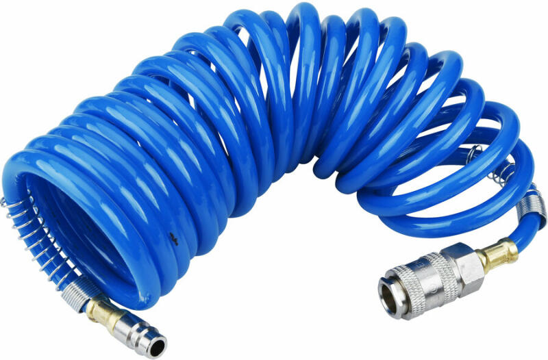 Poliamid 12 anyagból készül. Lehetővé teszi a légnemű és folyékonyan áramló közegek gyors és hatékony átáramlását. A visszahúzó erő hatására nem marad a munkahelyen tömlőhalom. Nincs botlásveszély. A munkavégzés megszűnésével automatikusan visszaugrik eredeti helyzetébe. A PA12 minőségi mutatói hosszú élettartamot garantálnak. Nagy ellenálló képességgel r