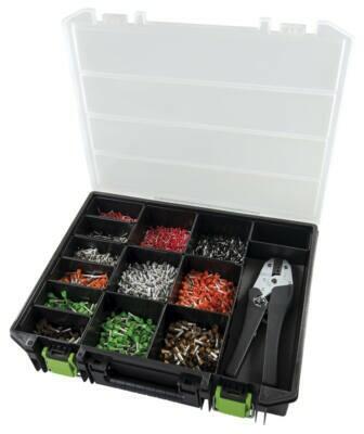 Haupa 270891 Érvéghüvely készlet szigetelt présszerszámmal Tartalom: 5.300 Szigetelt érvéghüvelyek sorozat DIN, présfogó (cikksz. 210842), préstartomány 1 – 10 mm2, műanyag szortimentes dobozban 415 x 335 x 90 mm. 1.000 Szigetelt érvéghüvelyek 8/1, piros, cikksz. 270805 1.000 Szigetelt érvéghüvelyek 8/1,5, fekete, cikksz. 270807 1.000 Szigetelt érvéghüvelyek 8/2,5, kék, c