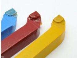 Esztergakés, homlokélű ISO5 P30; K10; M10 forrasztott lapkával Esztergakés, homlokélű ISO5 forrasztott keményfém lapkával (DIN4977 ; MSZ1903) Acélhoz, P30-as (kék) Öntvényhez, K10-es(piros) Rozsdamentes acélhoz, M10-es (sárga)