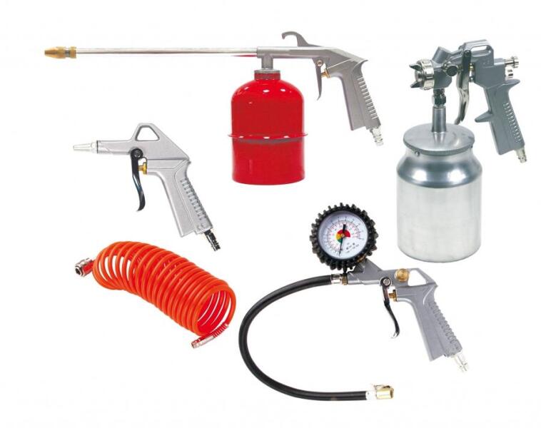 Univerzális 5 Részes Levegős Szerszámkészlet Kompresszorhoz Tökélete s eszközkészlet minden otthoni és professzionális műhely számára, amely levegős kompresszorral rendelkezik. Ez a 5 részes készlet magában foglalja az alapvető szerszámokat és kiegészítőket, amelyek széles körű felhasználást tesznek lehetővé különféle projektekben és feladatokban. Főbb Paraméte