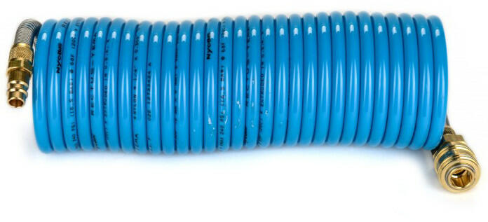 Poliamid 12 anyagból készül. Lehetővé teszi a légnemű és folyékonyan áramló közegek gyors és hatékony átáramlását. A visszahúzó erő hatására nem marad a munkahelyen tömlőhalom. Nincs botlásveszély. A munkavégzés megszűnésével automatikusan visszaugrik eredeti helyzetébe. A PA12 minőségi mutatói hosszú élettartamot garantálnak. Nagy ellenálló képességgel r