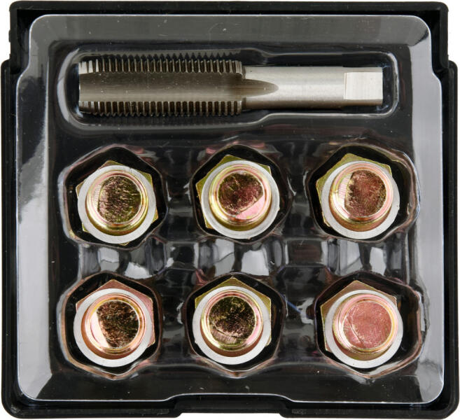 Készletek az olajteknő leeresztőcsavarjának meneteinek egyszerű javításához, sebességváltókhoz stb. Illeszkedik a személygépkocsikban és könnyű tehergépkocsikban általánosan használt legtöbb menethez. a készlet tartalmazza a menetvágót, 6 dugót és 6 alátétet alumíniumból készült tömítő alátétek praktikus műanyag doboz Méret: M15 x 1,5 Műszaki adatok: Cikksz