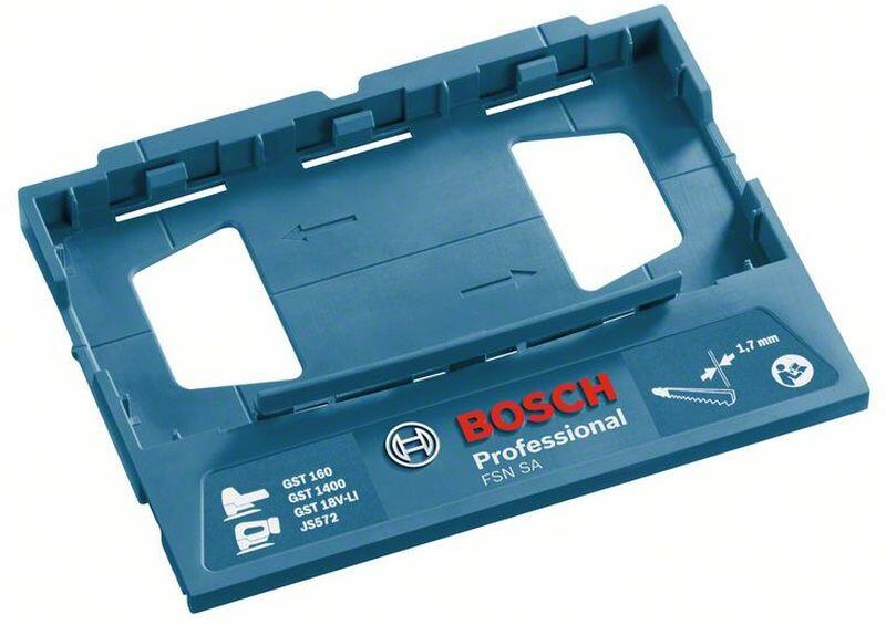 BOSCH FSN SA Professional Vezetősín adapter 1600A001FS - Vezetett egyenes vágások szúrófűrésszel a vezetősínen Felhasználói előny: - Kompatibilis a Bosch FSN vezetősínekkel, valamint a Mafell és Festool vezetősínekkel - A szúrófűrész és adapter egyszerű, szerszámmentes összekapcsolása és bontása - Használható GST 160, GST 140, GST 1400, valamint GST 18 V-LI, GST 18 V