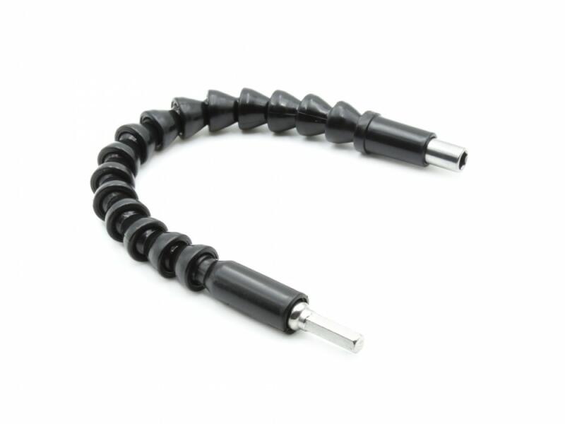 A termék leírása Rugalmas hosszabbító csavarhúzóhoz / fúrószárhoz. Lehetővé teszi a csavarok nehezen hozzáférhető helyeken történő csavarozását. A bitlap vastagsága: 1/4 ". Teljes hossz: 300 mm.