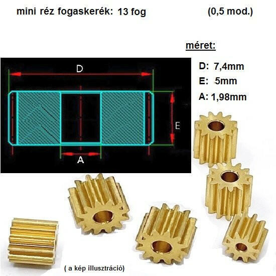 "A fogaskerék külső átmérőjének számítási módja: fogaskerék átmérő = (fogak száma + 2) * modul Például (0,5 modul 10t): fogaskerék átmérő = (10 2)* 0,5 = 6mm" Kompatibilis például:
