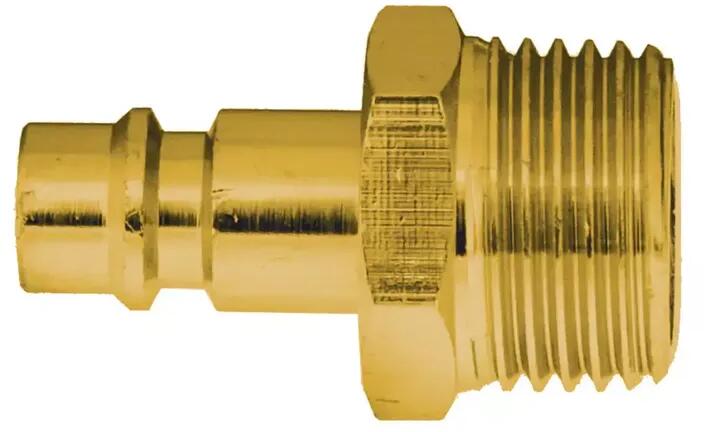 Hímivarú menetes csatlakozó sárgarézből. 3/8"-os külső menettel, 17-es kulcsmérettel. Pneumatikus berendezésekhez műhelyekben, az iparban és építkezéseken. Tulajdonságok: Rézből készült Technikai adatok: Maximális nyomás: 10 Bar A csatlakozó tengely mérete: 1/ 4" Szál típusa: 3/8 "internal Kulcsméret: 17 Anyag: sárgaréz