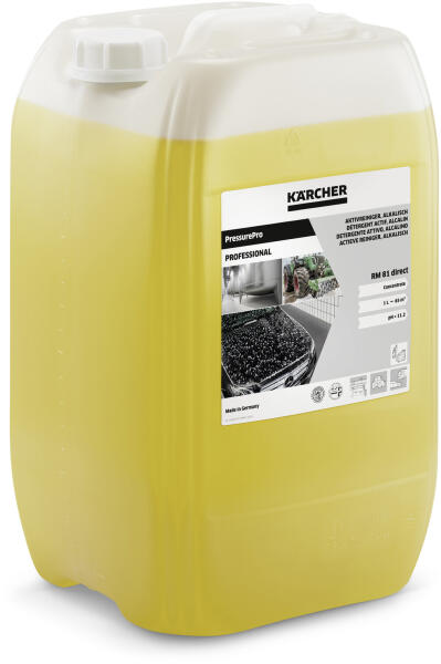 A PressurePro Active Cleaner, lúgos RM 81 direct, hatékony, sokoldalú és kíméletes magasnyomású tisztítószer a nehéz olaj-, zsír- és ásványi szennyeződések eltávolítására. A PressurePro aktív tisztítószert közvetlenül, hígítatlanul kell használni a magasnyomású mosók tisztítószertartályában. A PressurePro aktív tisztítószer hatékony tisztítóformulája bizt