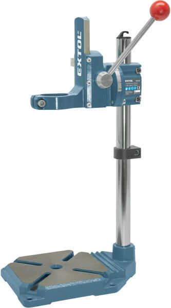 A stabil és öntöttvas talppal szerelt Extol® Premium 8807000 fúróállvány elforgatható befogó fejébe 43 mm/39 mm/25 mm nyakátmérőjű elektromos fúrógépeket lehet befogni, és faanyagokat, műanyagokat, fémeket stb. lehet merőlegesen vagy 0-90°-os szögben fúrni, a kar mozgatásával létrehozott löket 60 mm. A fúrógépet a nyakátmérőnek megfelelő műanyag perselyek (adap