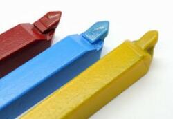 Esztergakés, hegyes ISO10 P30; K10; M10 forrasztott lapkával Esztergakés, hegyes ISO10 forrasztott keményfém lapkával (DIN4975 ; MSZ1905) Acélhoz, P30-as (kék) Öntvényhez, K10-es(piros) Rozsdamentes acélhoz, M10-es (sárga)
