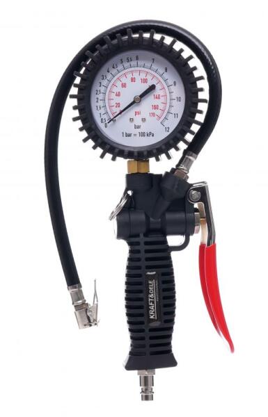 A légfúvó pisztolyt professzionális használatra tervezték. Új megjelenés, egyszerű és kényelmes működés. Ideális levegőszabályozáshoz, felfújáshoz mindenféle autó kerekéhez. Gumiabroncsnyomásmérővel ellátott légpisztoly vagy nyomásmérő a gumiabroncsnyomás méréséhez. A pisztoly egy szabványos, gyorscsatlakozásra alkalmas végszerelékkel van ellátva . A nyomás