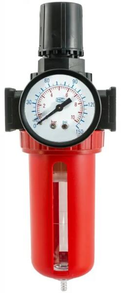 MŰSZAKI ADATOK: bemenet / kimenet - 1/4 " -es nyomásmérő kettős skála (bar / Psi) üzemi nyomással - 0-10 bar / 0-150 psi nyomásszabályozó vízleeresztő szelep
