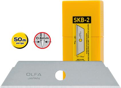 Biztonsági trapéz penge Olfa késekhez. Ipari alkalmazásokhoz fejlesztett termék. Alkalmazható: SK-4, SK-5, SK-9 és UTC-1 késekhez. Magassága: 17.5 mm Vastagsága: 0.6 mm Hosszúsága: 72 mm Kiszerelés: 50 db / csomag Bliszter nélküli, dobozos kiszerelés.