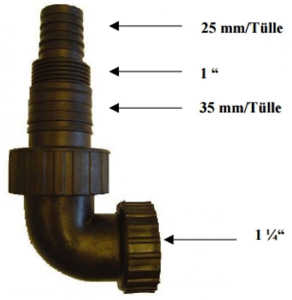 Jellemzők: Külső menetes tömlőcsatlakozás, GÜDE búvárszivattyúkhoz tervezve Műszaki adatok: Csatlakozó menet: 1 1/4" belső Kompatibilitás: 94246 Tömlő átmérő: 25/32 mm - 1"