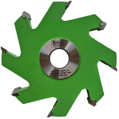 Természetes fához, MDF-hez és egyéb bútor alapanyagokhoz, műanyaghoz, 25 mm vastag és maximum 65 mm mély nútok, hornyok, falcok marására tervezett 170x25x30 mm Z8 HM HW nútmaró, falcmaró, professzionális faipari asztali marószerszám asztalos marógépekhez, vídia (keményfém) élekkel. 170 mm átmérőjű, 25 mm vastag, 8 késes, HM, forrasztott lapkás nútmaró, falcmaró, tá