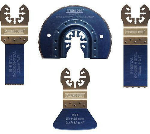 A termék leírása: A 4 részes Strend Pro szerszámkészlet alkalmas otthoni barkácsolók és professzionális kézművesek számára. Fára, műanyagra, acélra, alumíniumra és színesfémekre használják. Többszörös csiszolásra szolgál. Fűrészlapokból, félkörből és kaparóból áll.
