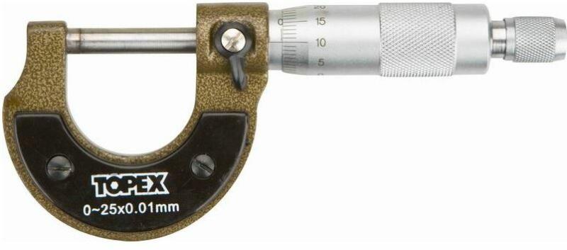 Topex Könnyen kezelhető mikrométer szürke műanyag tokban Tulajdonságok: Nagyon pontos – a mérési pontosság 0,01 mm Hosszúság: 135 mm Mérési tartomány: 0-25 mm Tartozék: 1 db két oldali kömös kulcs